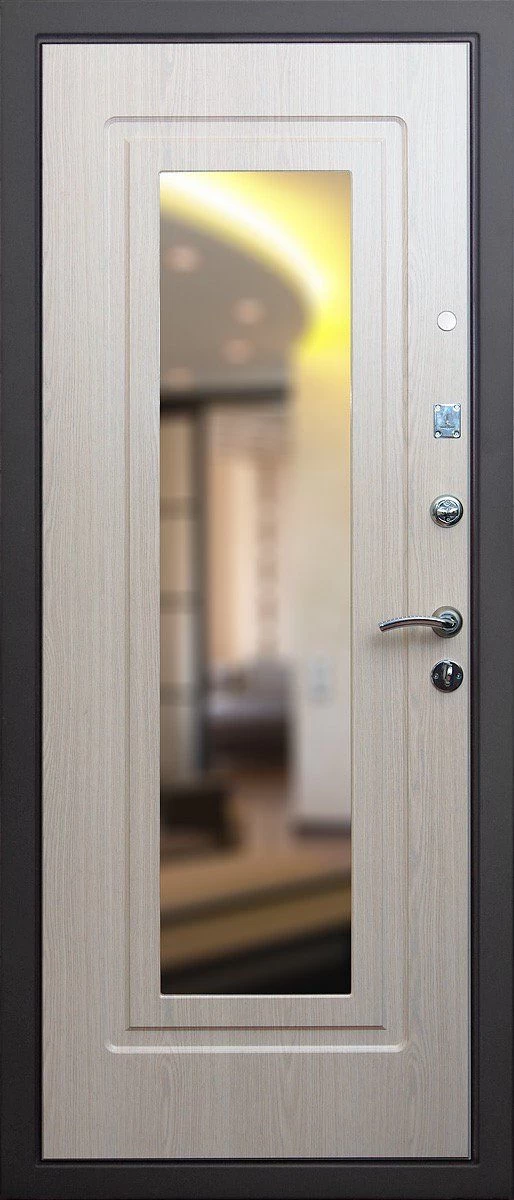 Прочная металлическая Дверь с зеркалом DZ385 по цене от 30 000 руб. под заказ в любой комплектации. Вы можете выбрать материал, замки, цилиндры и многое другое. Производим сами! Быстрая доставка и установка в Киренске.