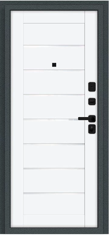 Надежная входная Дверь Браво Техно/SBlack Старк антрацит/White Silk премиум класса по цене 37 550 руб. Большая толщина стали защитит от проникновения в ваш дом, квартиру или коттедж. Используется очень качественная фурнитура: замки, цилиндры, ручки, защелки. Покрытие и отделка двери изготовлено под внимательным контролем производителя. Дверь имеет долгий срок службы и гарантию.