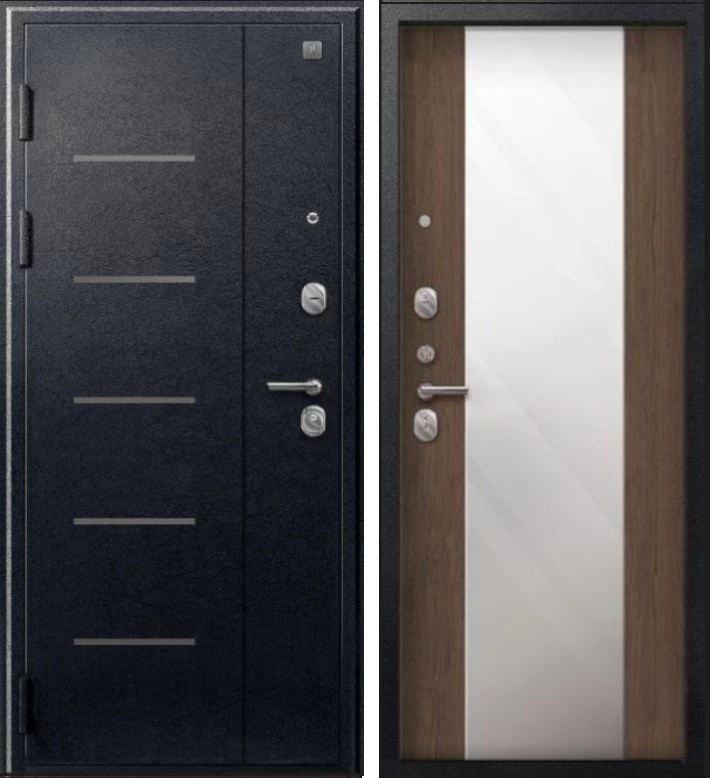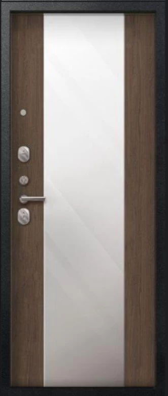 Надежная входная Дверь V-04 Черный муар - Миндаль Зеркало премиум класса по цене 44 000 руб. Большая толщина стали защитит от проникновения в ваш дом, квартиру или коттедж. Используется очень качественная фурнитура: замки, цилиндры, ручки, защелки. Покрытие и отделка двери изготовлено под внимательным контролем производителя. Дверь имеет долгий срок службы и гарантию.
